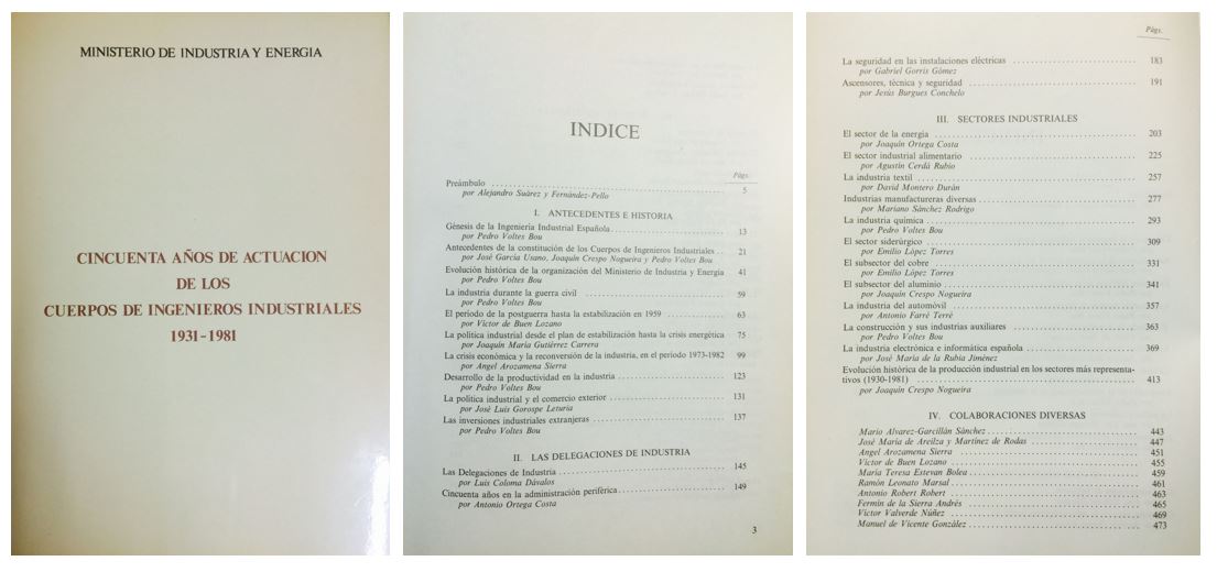 Una iniciativa relevante en el contexto de la efeméride fue la publicación del libro «Cincuenta Años de Actuación de los Cuerpos de Ingenieros Industriales 1931-1981», que se estructuró en cuatro capítulos sobre antecedentes e historia, las Delegaciones de Industria, sectores industriales y contribuciones diversas.