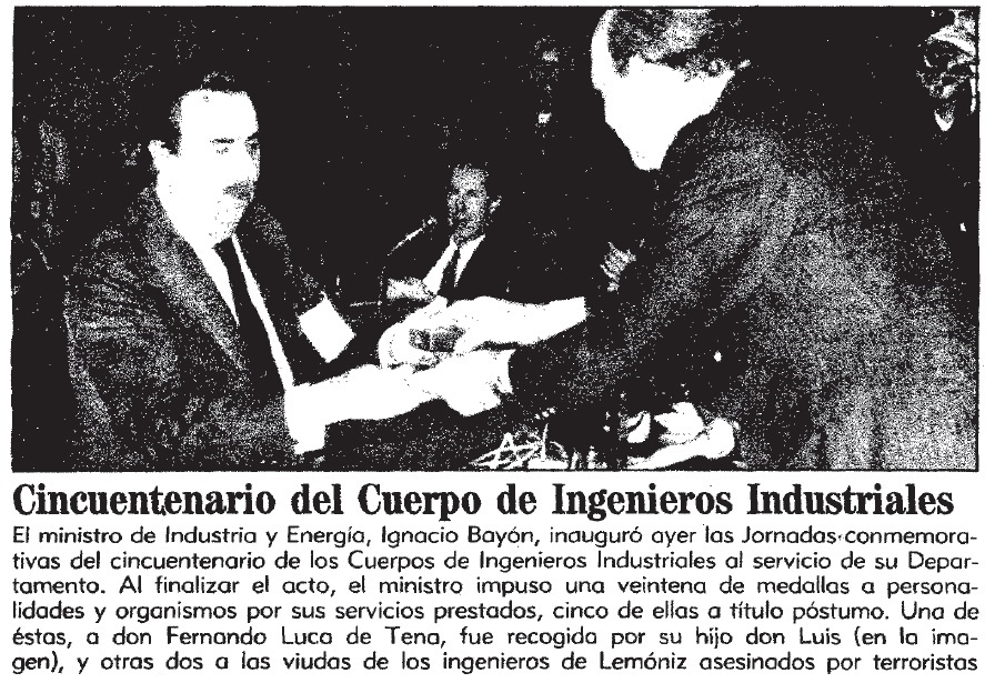 - D. Fernando Luca de Tena (a título póstumo; Ingeniero Industrial y Periodista, Decano honorífico del Colegio Oficial de Ingenieros Industriales)