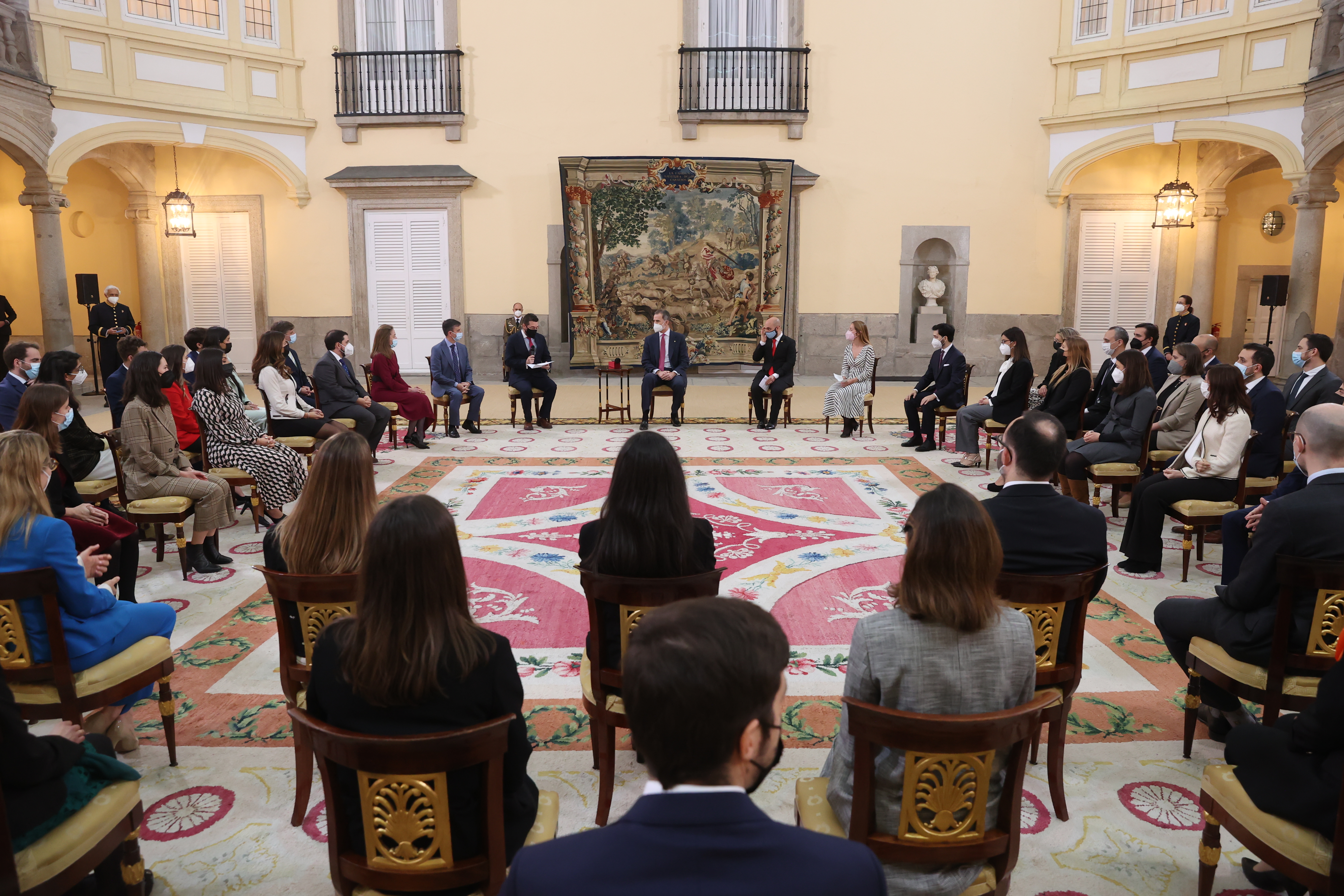 Nuestros compañeros del CII Ernesto La Porte Sáenz, José García Usano y Eduardo Barroeta Prichart en una audiencia con S.M. el Rey Juan Carlos I