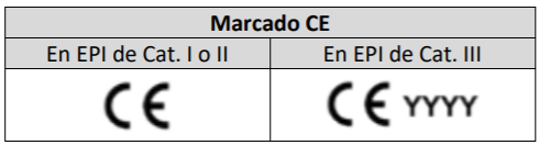 Una vez completado el proceso de evaluación de la conformidad, el fabricante debe elaborar la Declaración UE de conformidad y poner el marcado CE al producto. En el caso de los EPI de Categoría III, junto al logotipo CE deben aparecer las cuatro cifras del número de identificación del Organismo Notificado que participa en el control de la producción: